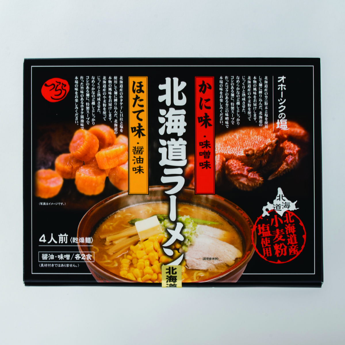 カニ麺・ホタテ麺に蟹味・帆立味スープがセットされた、当者人気商品です。
